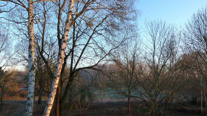 Das Wetter ist kalt, aber die Sonne lächelt – immer mal wieder. So komme ich gut vorwärts. Schon nachmittags bin ich in der wilden Parklandschaft im Süden Dessaus. Auf einer Holzbrücke halte ich inne und betrachte das Spiel von Licht und Schatten. Als ich mir Tee in meine Tasse gieße, prostet mir eine von zwei alten Frauen mit Rädern mit ihrer Trinkflasche zu. Eine kurze Plauderei, ergibt sich. Wie nötig es sei, den verwilderten Park wieder zu pflegen. Mich hätten auf der Fahrt von Freiberg bis hier ganz andere Verwüstungen empört, dagegen sei das hier geradezu romantisch, werfe ich ein. Die beiden kennen hier jede Parkbank und jeden Weg – und erklären mir genau, wie ich weiterfahren soll, um zu meinem Quartier, dem Landhaus am nördlichen Stadtrand von Dessau zu kommen. Meine unkonventionelle Reiseart beeindruckt die rüstigen Seniorinnen, früher sei man auch weiter hinaus geradelt. Ich verabschiede mich. Schön ist das, höre ich die eine zu der anderen sagen, als ich schon ein paar Meter weiter bin.