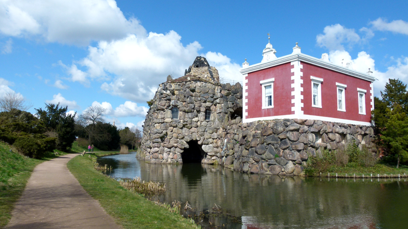 Nach seiner standesgemäß-obligatorischen Italien-Reise ließ der spendable Fürst Franz am östlichen Ende des Wörlitzer Parks den daheimgebliebenen Untertanen ein Stück süditalienische Idylle nachbauen, samt feuerspeiendem Mini-Vesuv - Vorbild für heutige Erlebnisparks in aller Welt? Nicht ganz, denn der Park ist nach wie vor, trotz aller marktwirtschaftlichen Rahmenbedingen, frei zugänglich. Dennoch ist des Volkes Getümmel kaum zu spüren - noch nicht! Bis Mittag werden auf den Parkplätzen dann wohl die ersten 20 Reisebusse eingetrudelt sein...