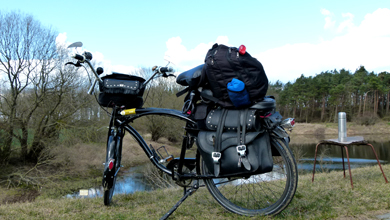 Beim sowjetischen Ehrenmal, das anlässlich des Zusammentreffens der Alliierten zum Ende des 2. Weltkrieges nahe der Torgauer Elbquerung errichtet wurde, bin ich erstmalig. Sitzbänke, eine Infotafel und der Blick ans andere Ufer bieten sich auch für eine profane Kaffeepause an. Während ich meine Thermoskanne öffne, trifft ein junger Radler ein - mit einem riesigen Armee-Rucksack beladen. Wir beäugen uns ein Weilchen schweigend, dann kommen wir ins Gespräch. Für ihn ist es die erste große Radtour, von Berlin nach Torgau - an einem Tag! Mein Respekt ist ihm sicher. Unser kleiner Erfahrungsaustausch konzentriert sich auf das Thema Gepäck und wetterfeste Kleidung. Ich empfehle ihm, sein Gepäck künftig besser am Rad zu verteilen, statt alles auf dem Rücken zu packen. Er gibt mir den Tipp, mir als ultimatives Schuhwerk die geländetauglichen Bundeswehrstiefel zu besorgen, aus einem Military-Shop, am besten schon eingelaufene.