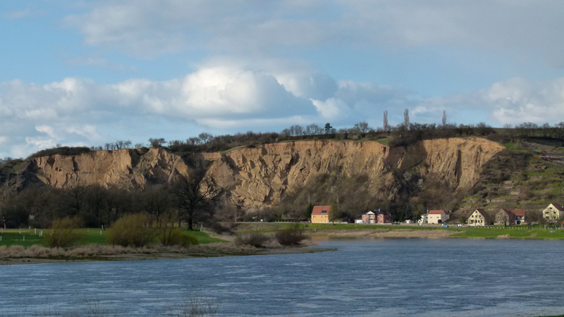 In Riesa führt der Elbe-Radweg über die Brücke ans westliche Ufer. Doch die Betonghettos am anderen Ufer sind so abstoßend, dass ich auf der ostelbigen Seite bleibe und den Schildern nach Diesbar-Seußlitz folge. Der Radweg führt auf dem Deich entlang, der ein kurzes Stück weiter auf Ausbesserung oder Vollendung harrt. Deshalb ist dort der Radweg gesperrt, wohl schon seit längerem. Ein mir entgegenkommender Fußgänger verrät mir, dass man an der verwaisten Baustelle dennoch durchkommt. Nach einer schutzlosen Strecke zwischen Fluss und Feldern, wo mich der Wind als Spielball nimmt, gelange ich in die sehr flussnahe Eigenheimsiedlung von Grödel. Meinem Eindruck nach sind etliche Häuser erst nach den Rekord-Hochwassern des jungen Jahrhunderts gebaut worden. Gegen diese offenherzige Einladung für Elbfluten erscheint mir selbst mein Wohnsitz am Laubegaster Ufer in Dresden als feste Wasserburg! Und ich frage mich: Warum bauen Menschen - aller besseren Erkenntnis zum Trotz - weiterhin ihre Wohnhäuser so nah und so flach in die Strömungsbiegung eines großen Flusses? Weil die Grundstückspreise günstig waren? Ich sehe sie schon voller Enthusiasmus Sandsäcke schleppen - und damit der nächsten naiven Hoffnung aufsitzen...