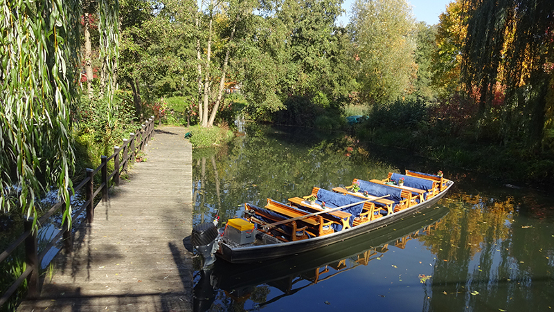 In Lübben befinde ich mich im touristischen Herzen des Spreewaldes. Paddelboote und Ausflugskähne schunkeln umher - letzere wurden einst durchs flache Gewässer der Spree gestakt wie venezianische Gondeln, doch inzwischen wich die Nostalgie der Bequemlichkeit, die Gemächlichkeit der Betriebsamkeit, das leise Plätschern dem Motorengeknatter. An einem Donnerstag in der spätherbstlichen Nebensaison bleibt der Andrang allerdings erträglichen
