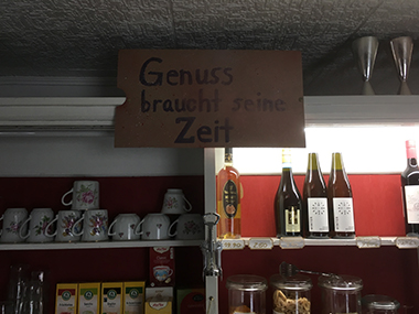 Vermutlich ist man hier noch mit einem weiteren Stück Arbeit bewegt und bemerkt den einzelnen Gast nicht. In den zwei Minuten, die ich warte, wird mir klar, dass es selten Durst oder Hunger sind, die das Wandervolk zur Einkehr locken. Es ist vielleicht das nostalgische Ambiente, das Idyllische - die Sehnsucht nach etwas, das sich nicht stillen lässt. Niemand bemerkt mein Warten, also ist es besser als sich aufzuregen, ein Stück selbst mich weiter zu bewegen...
